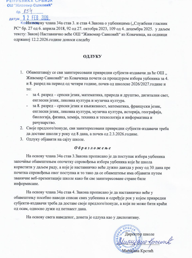 Oбавештење за издаваче уџбеника
